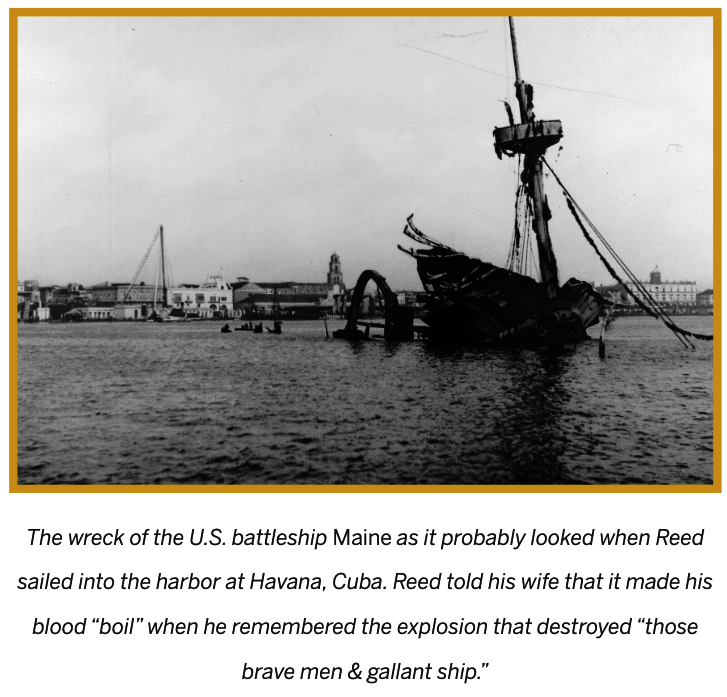 2 The sun was warm. The sea was blue. The orange juice, black coffee, and dry toast had stayed down. And Walter Reed was standing at the rail watching as his ship steamed past wharves, past the wreck of the battleship Maine, and into the harbor of Havana, Cuba.
