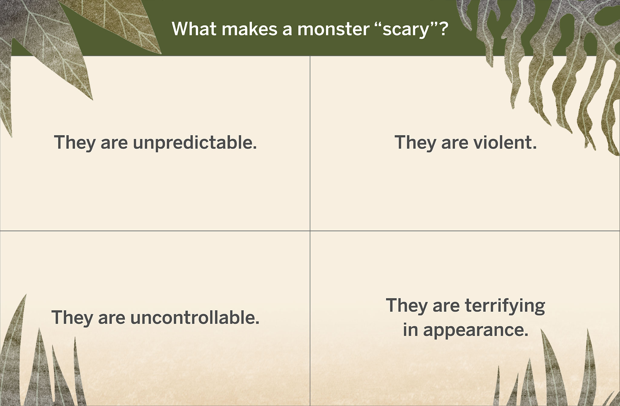Look at the monster matrix and think of a scary monster (from a movie, a book, a video game, etc.). What made that monster scary?