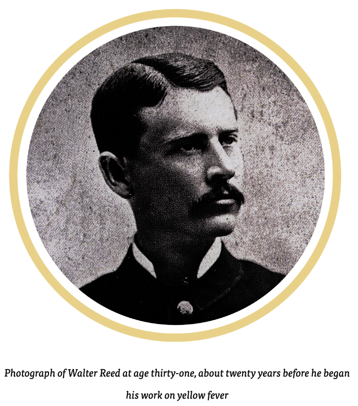 How does the author introduce and describe Dr. Walter Reed? Does he seem like a hero who is ready to defeat the “monster,“ yellow fever? Use two details to support your position.