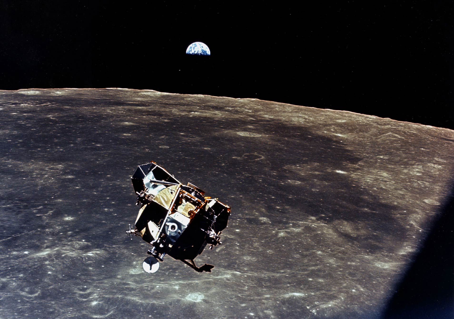7 The next day, Neil and I climbed into the lunar module and detached from [command module] Columbia to begin our descent to the moon. We had to stand in the craft—the design didn’t allow for seats. Our feet were held down on the floor by elastic cords to keep us from floating around.