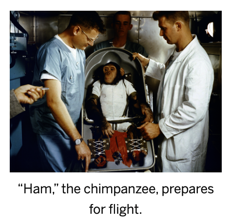 The author thinks of Ham, the chimpanzee, as “crew.” In what ways is Ham an astronaut? In what ways is he an animal test subject?