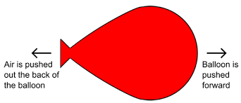 Another example is when you release the air out of a balloon. If you let go of a balloon without tying it closed, the air rushes out of the balloon and the balloon goes flying in the other direction.
