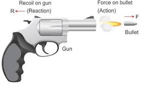 What force causes the gun to recoil after shooting?
