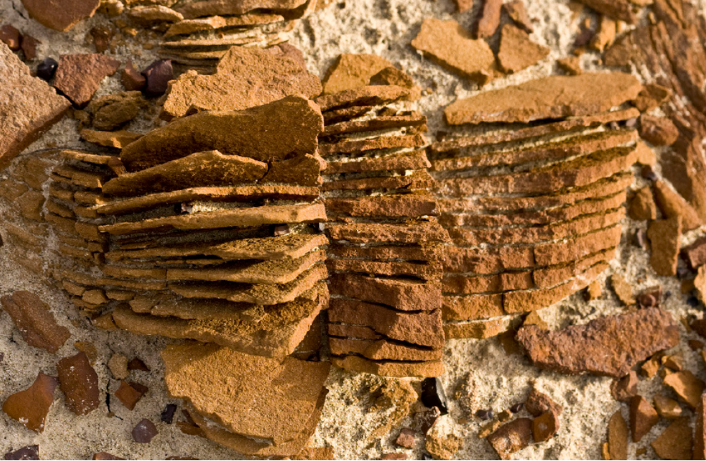 These particles can be transported either by water or wind in a process called erosion. Eventually these materials will settle, called deposition, in a location. During sedimentation, sediments are deposited on beaches and deserts, at the bottom of oceans, and in lakes, ponds, rivers, marshes, and swamps. Landslides drop large piles of sediment at the base of mountains most often in a horizontal position. Glaciers leave large piles of sediments, too. Wind can erode sand and smaller particles.