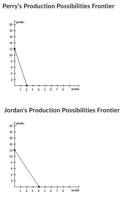 If Perry and Jordan each spends all their time producing the good in which they have a comparative advantage and trade takes place at a price of 1 novel for 7 poems, then