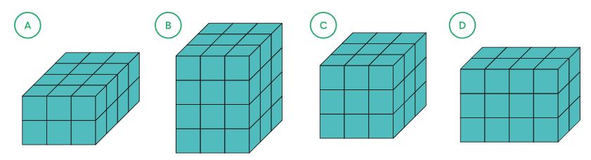 Jada’s prism has 4 layers, and each layer has 9 unit cubes.