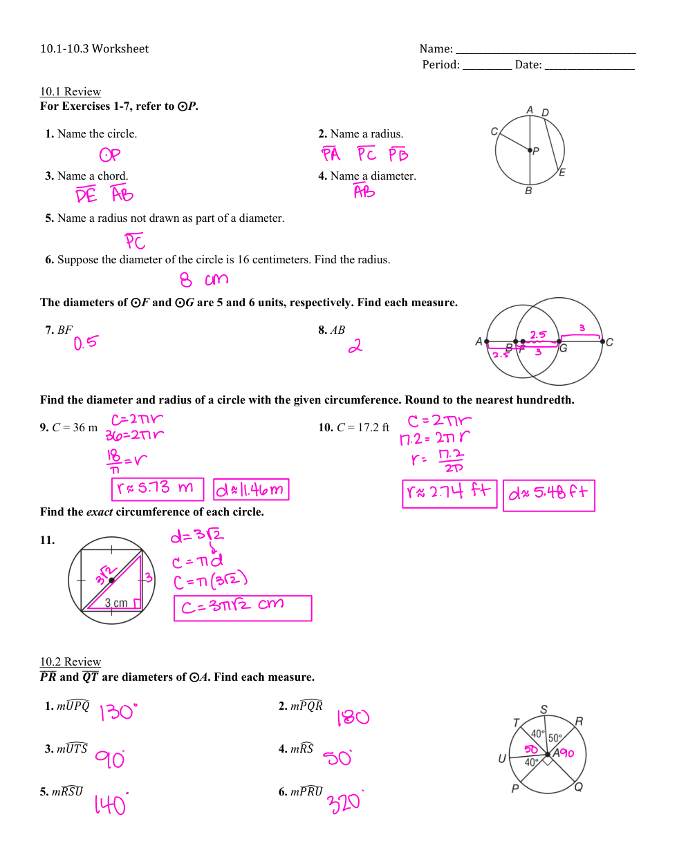 HW 10.1-10.3 Review (2024-2025)