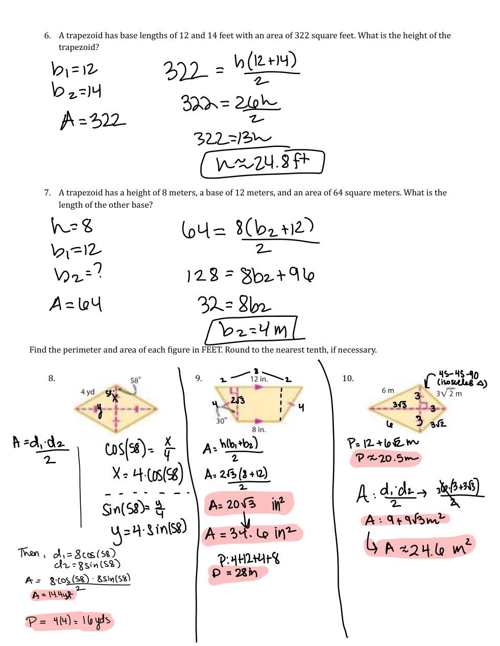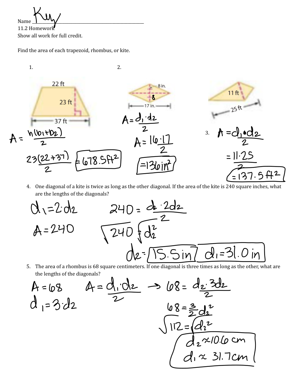 HW 11.2 Area of Trapezoids, Kites & Rhombi (2024-2025)