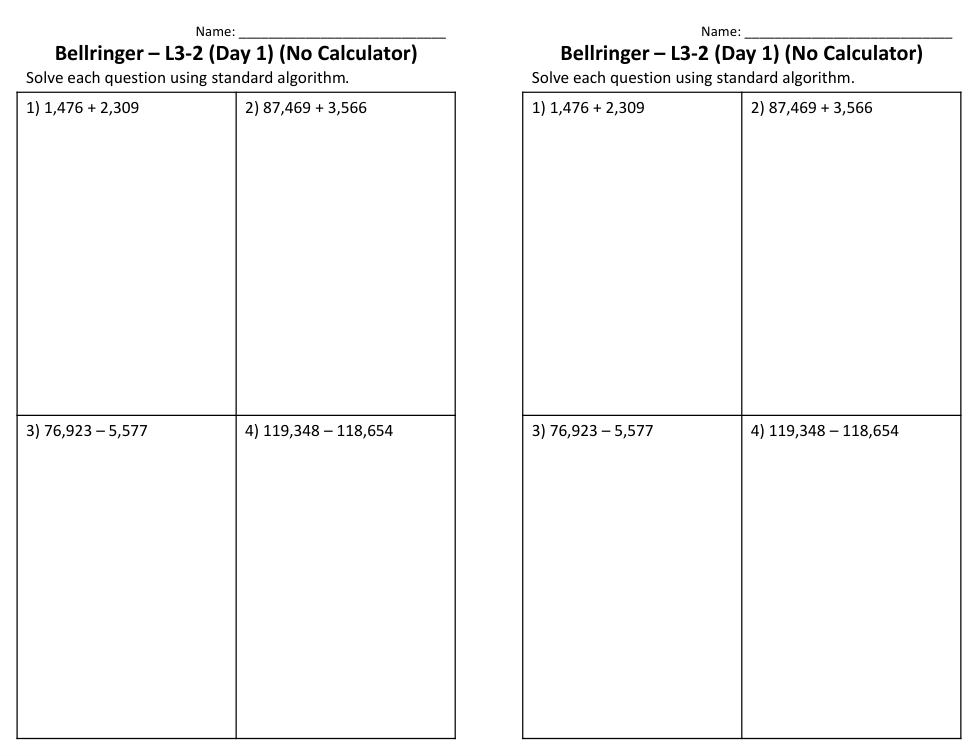 Bellringer Day 1 Lesson 3-2