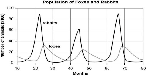 Using the graph as evidence, explain how changes in the rabbit population impact the fox population. (2 points)