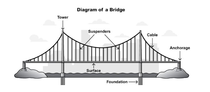 The image shows a diagram for a suspension bridge such as the Golden Gate.