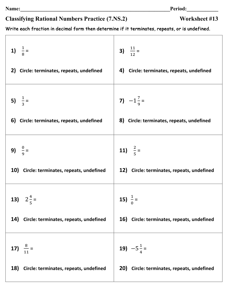 I will know I am successful when:*I can classify rational numbers as either terminating or repeating decimals.