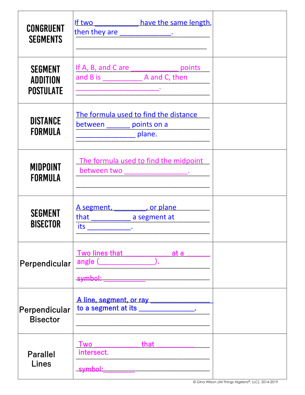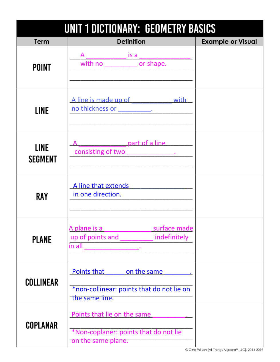 Fill in the missing definitions, then complete the example or visual.