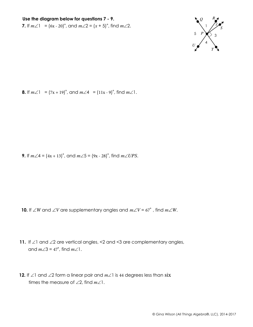 Use your notes to help you practice these problems. Show all of your work needed for each question.