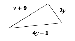 A triangle has sides whose lengths in units are represented by polynomials as shown, where y is a positive integer.