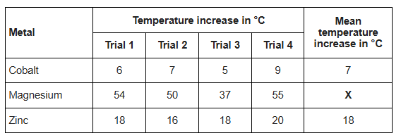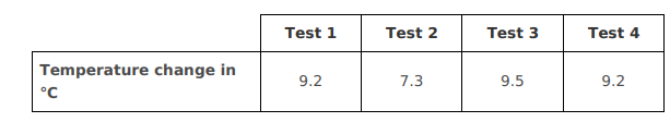 The student’s results are shown in the table below.