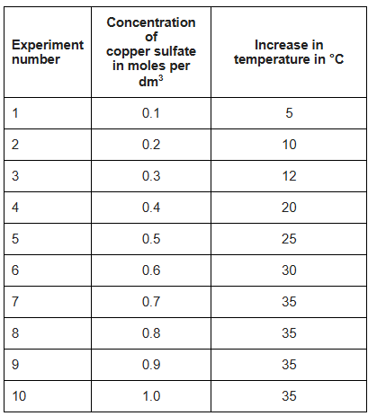 A student investigated the temperature change when zinc reacts with copper sulfate solution.