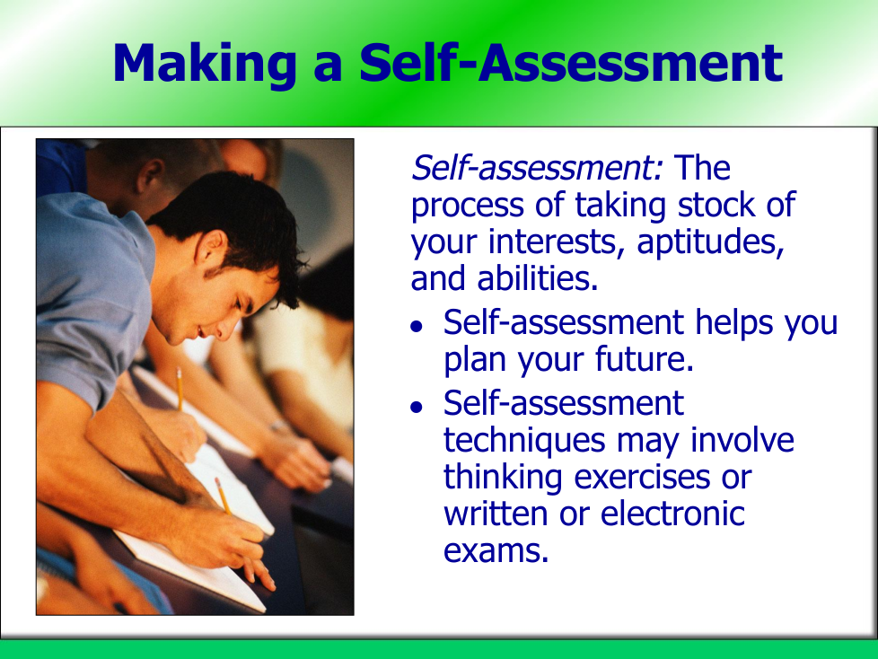What is self-assessment primarily used for?