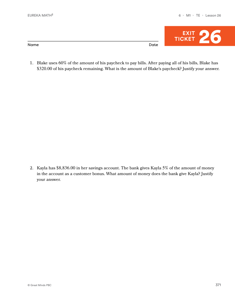 Lesson 26: Exit Ticket