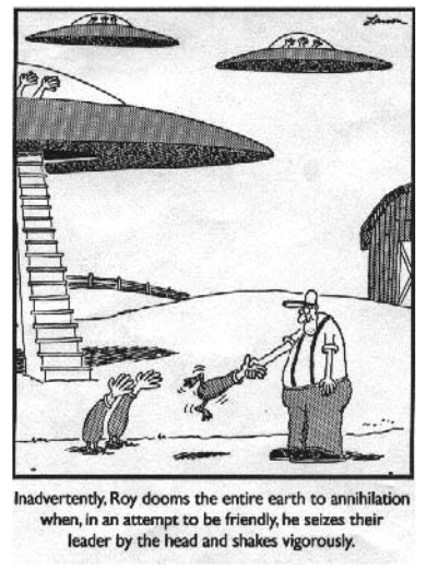 There are 11 aliens, 1 human and 3 flying objects in the picture