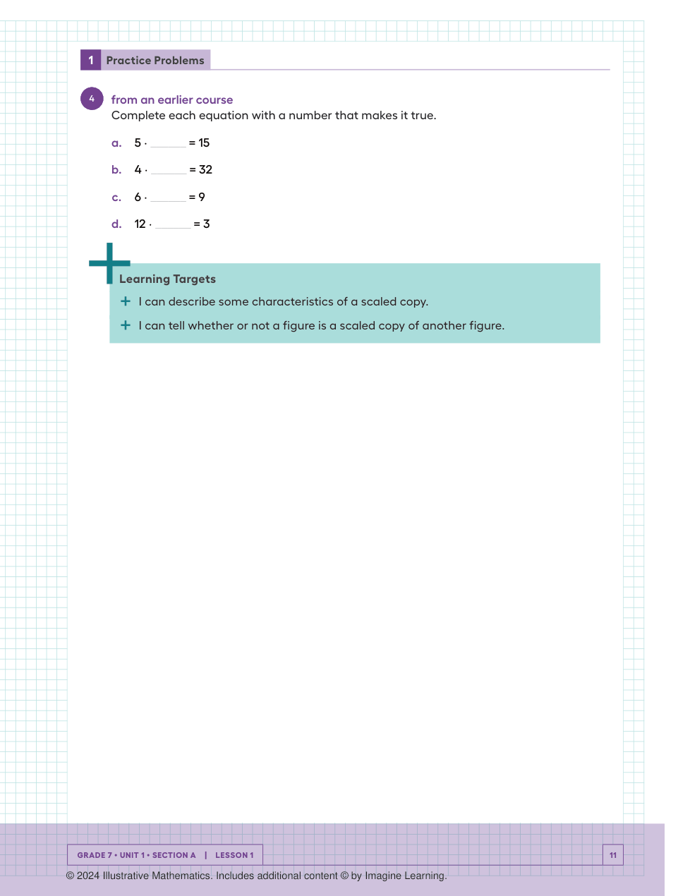 IM 7th Grade Math Practice1.1