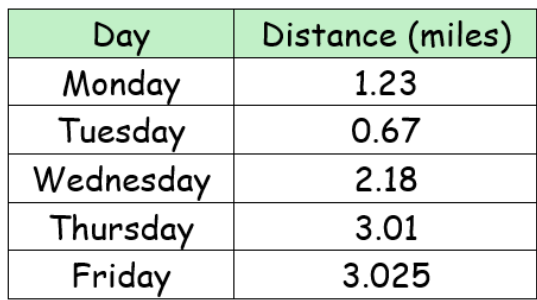 Now you try!!! Cameron recorded the distances he ran each day using the table.