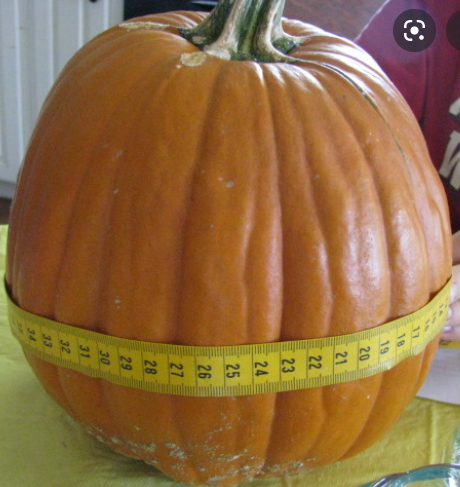 VOLUME: Before putting the pumpkin in the water, record the volume of water by using the measurements on the side of the container. Submerge the pumpkin and write the new water volume measurement in milliliters (ml). To determine the volume of the pumpkin, simply subtract the smaller number from the larger number. Show your work!
