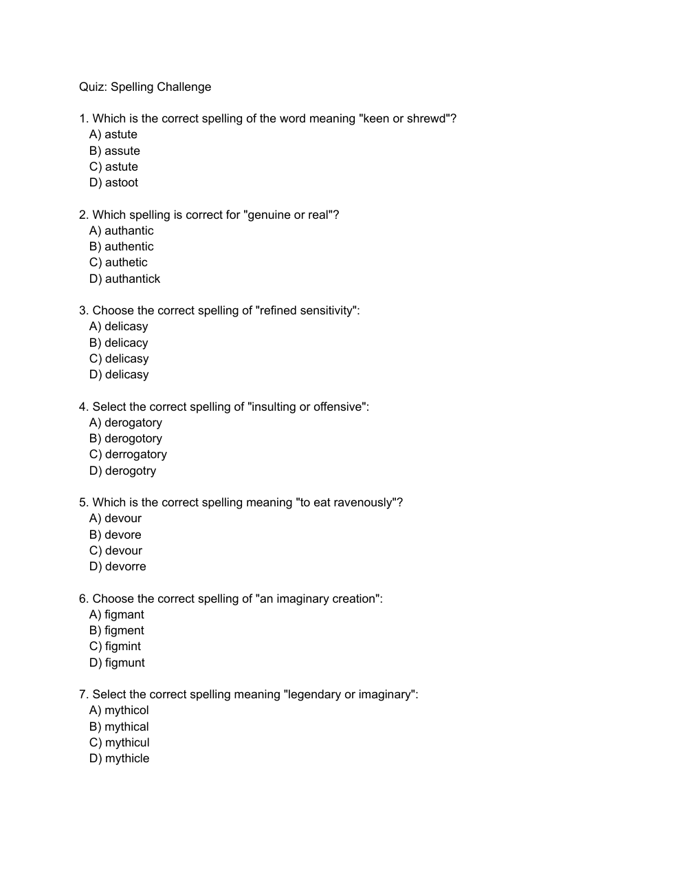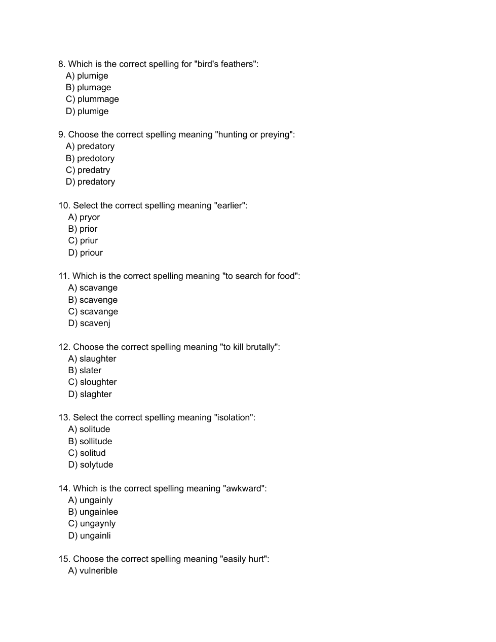 Wordly Wise Lesson 2 Spelling Quiz (Multiple Choice)