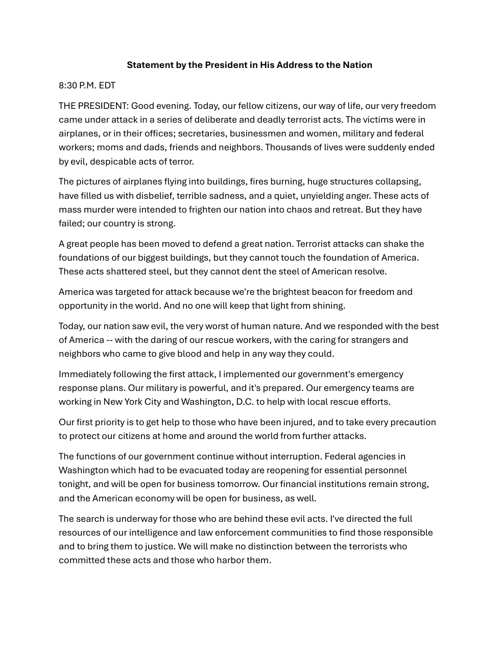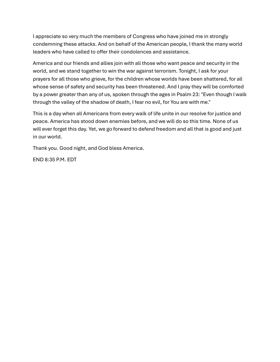 George Bush's 9/11 Address