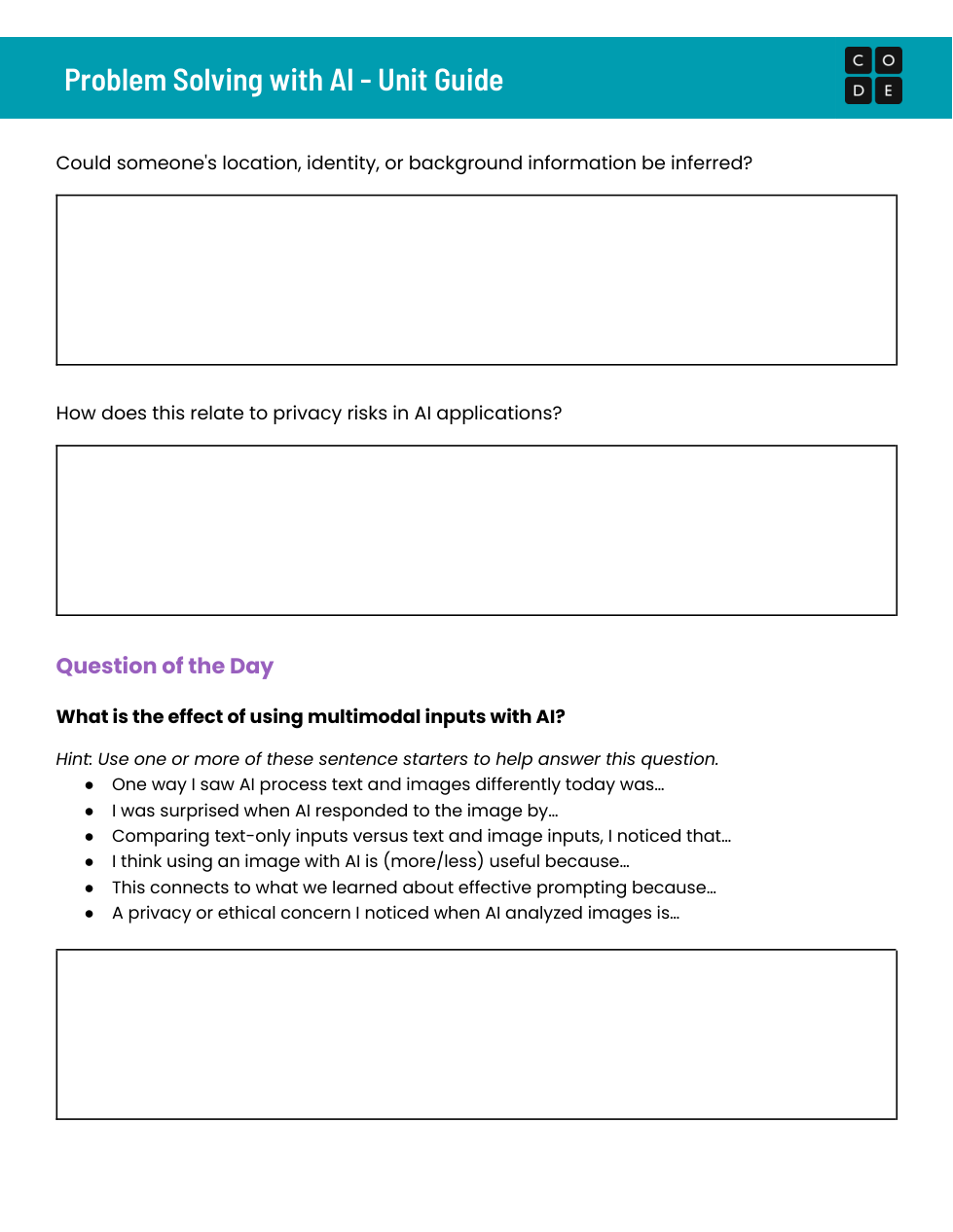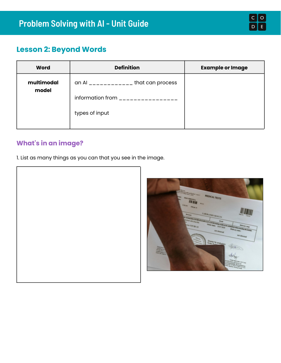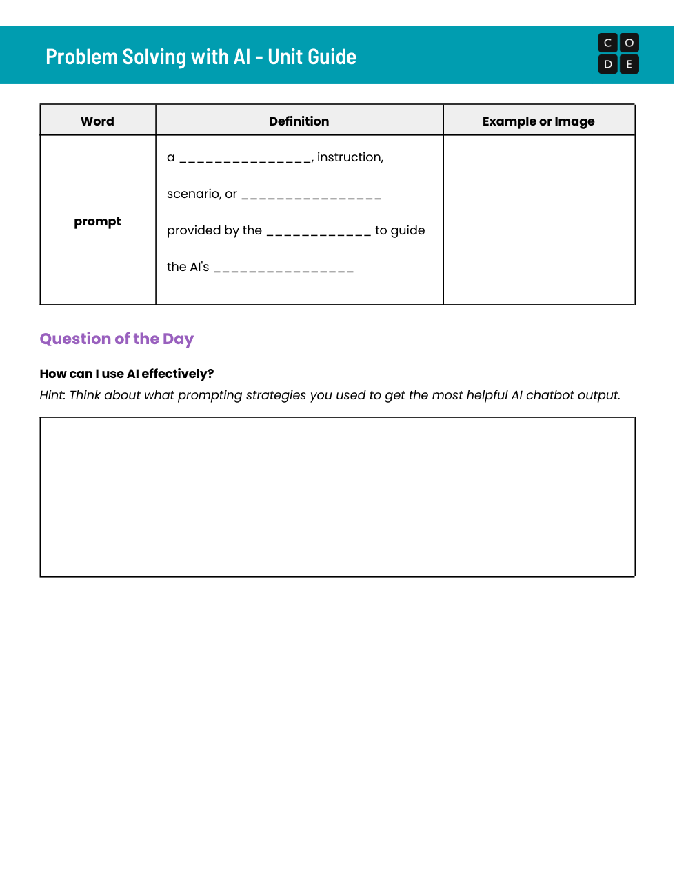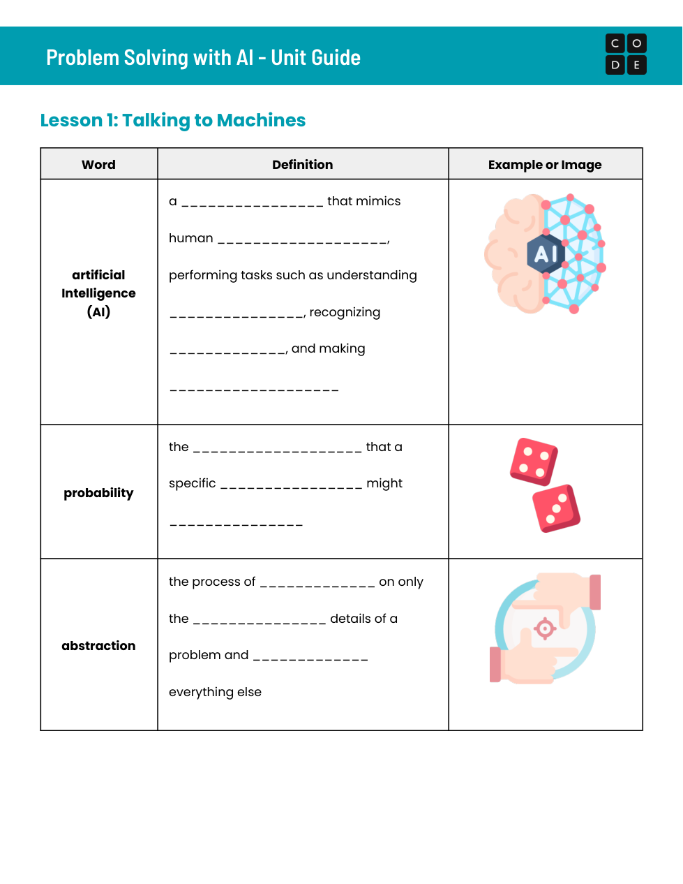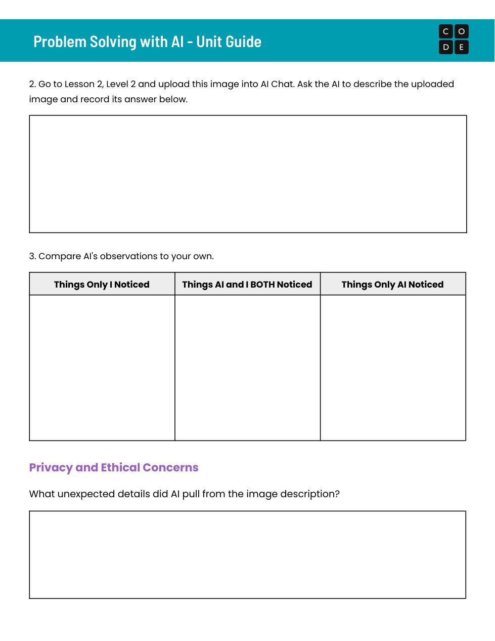 This is Code.org Unit 1 of Problem Solving with AI Unit 1 Lesson 2 & 3.