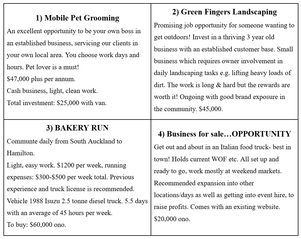 He is yet to figure out his budget but has checked Seek.co.nz and found four potential options.