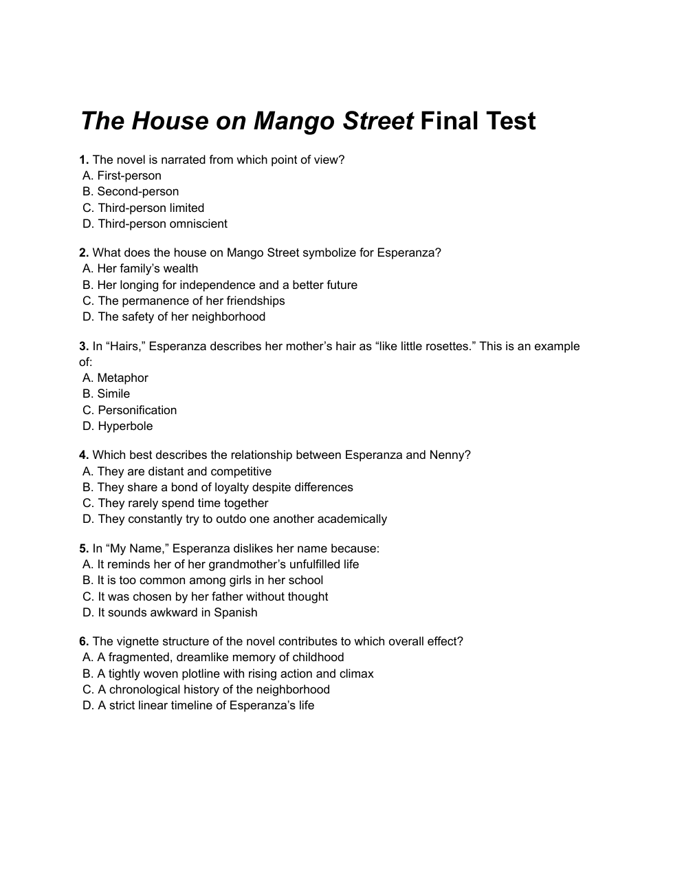 House on Mango Quiz