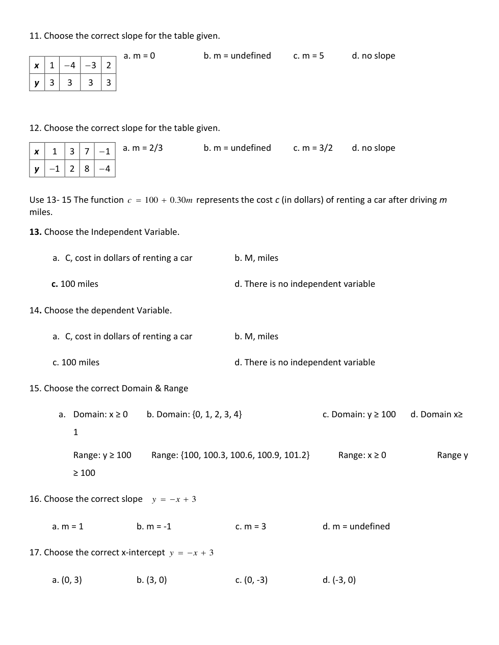Precalculus - Functions Readiness