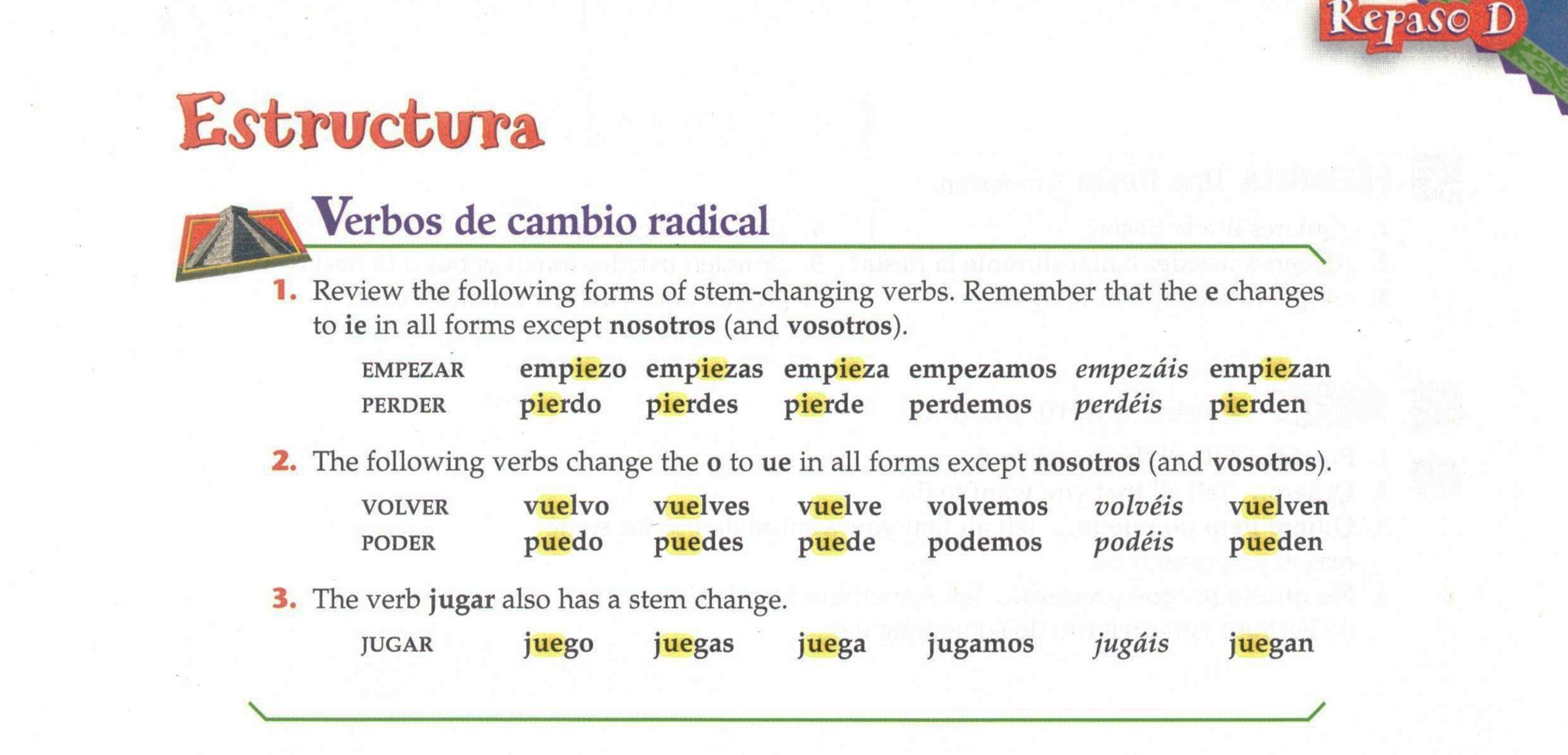 This formative helps students master boot verbs: empezar, perder, volver, poder, and jugar. It covers present tense conjugations, pronunciation, and application in sentences.
