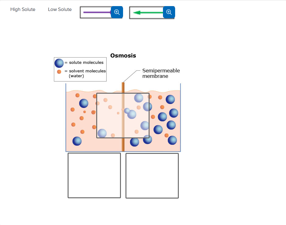 Study the image. In which direction will the water move in this image? Drag one arrow into the correct location.