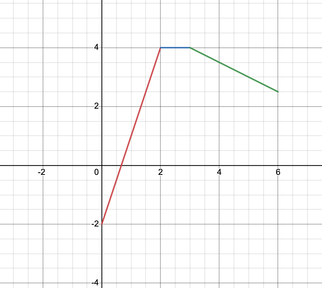 This is a position vs time graph. is the man walking faster or slower in the green section compared to the red section?