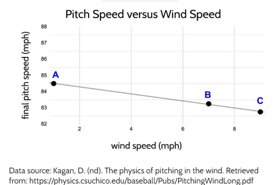 Below is a graph showing how wind speed affects pitch speed. The line on the graph shows the relationship between wind speed and pitch speed.