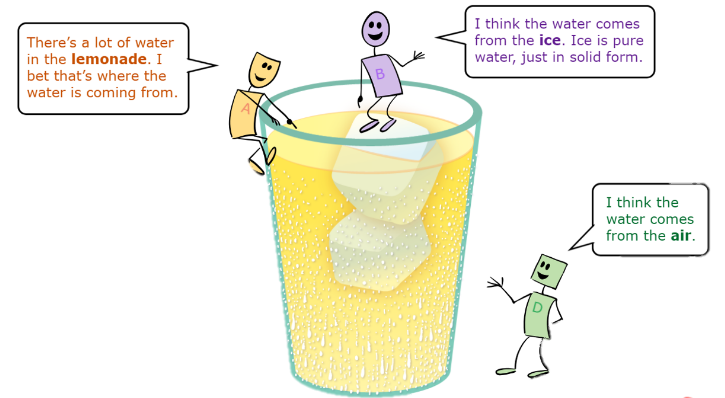 Ms. Abdul-Akbar and Mr. Francisque were visiting their friend, Ms. Arlauskas. They were in Ms. Arlauskas's backyard, enjoying some ice-cold lemonade. They noticed that there were droplets on the outside of the pitcher of lemonade.
