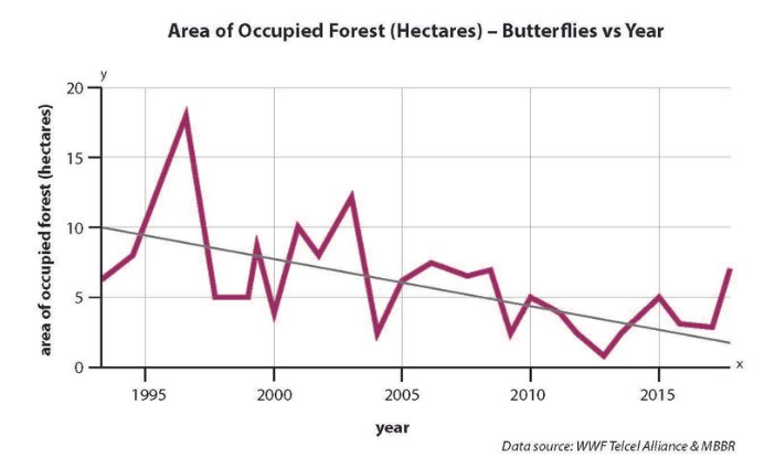In the graph below, the greater the area of occupied forest, the more butterflies.