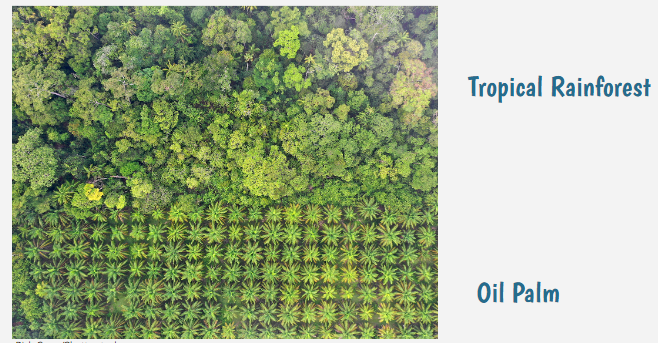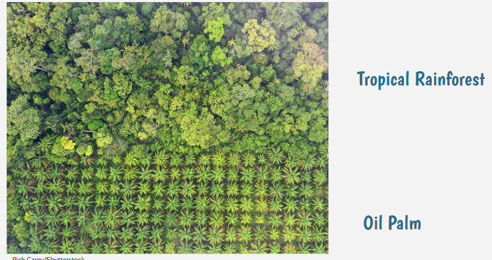 What kinds of disruptions could affect the oil palms that grow right next to the tropical rainforest?