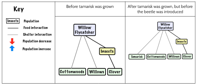 The introduction of the tamarisks beetles resulted in ____________________ because_____________.