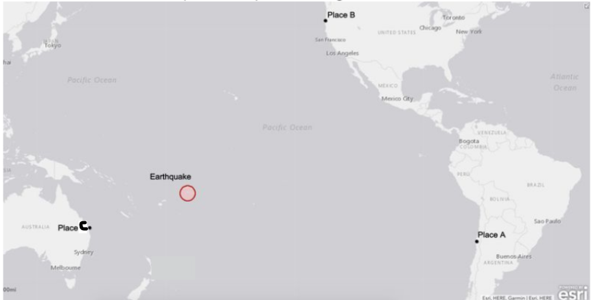 Use the descriptions of each location and the map to rank which places will be impacted by this tsunami first.