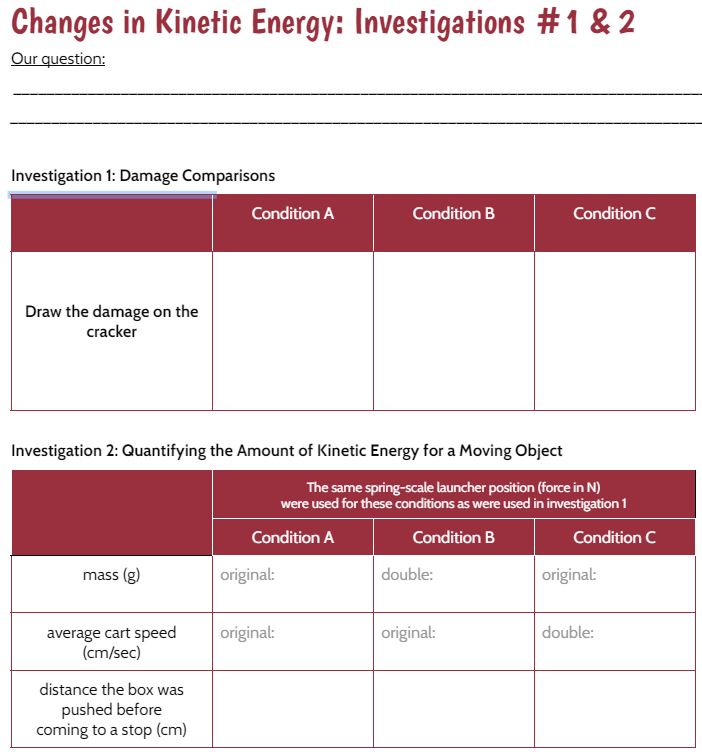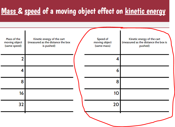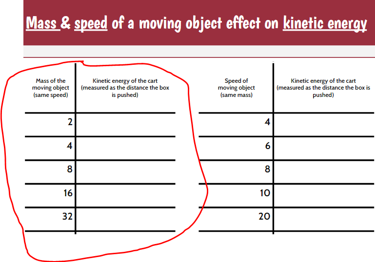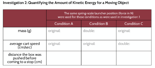 Today as you work you will measure the kinetic energy of moving carts by looking at how far it has moved.