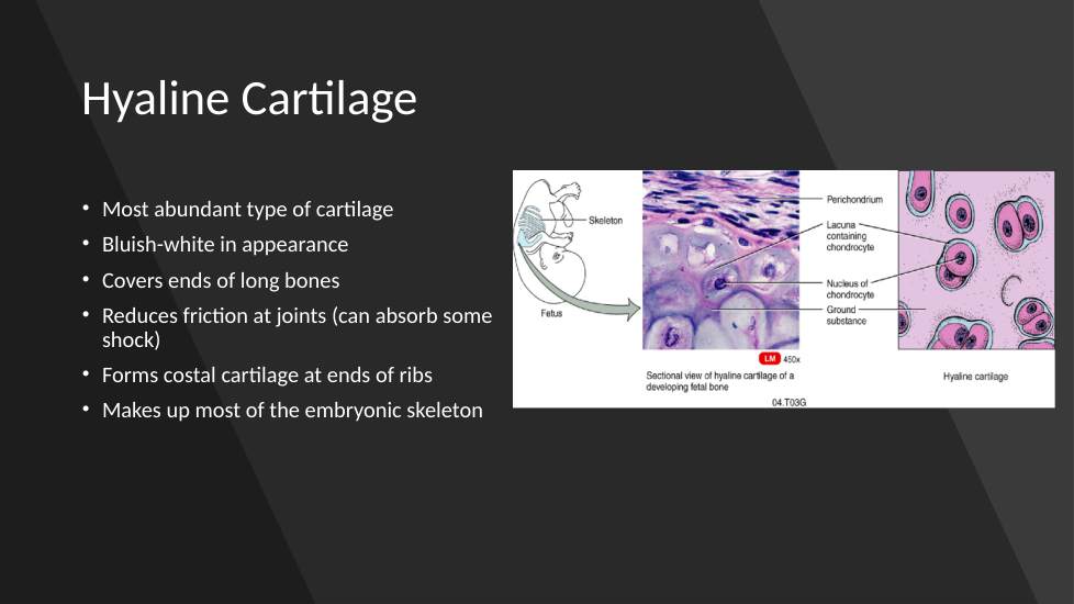 Where is hyaline cartilage commonly found in the body?