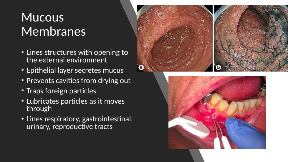What type of membrane lines structures with openings to the external environment?