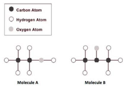 Two jars contain substances that smell similar. Molecule A is in one jar and Molecule B is in