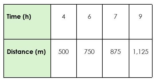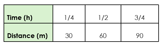 Now you try! The table below shows the relationship between the time in hours (h) Kennedi bikes and the distance she travels in miles (m).