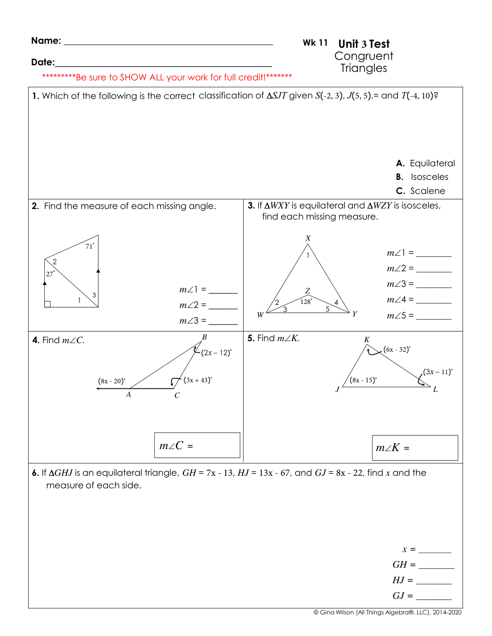 ZZ Test Unit 3 Congruent Triangles Edit Me