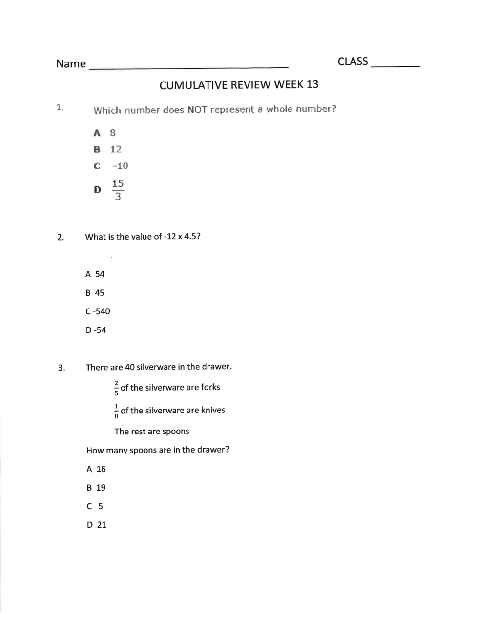 Cumulative Review Week 13