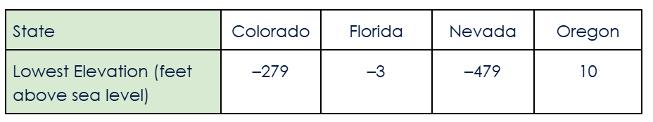 The chart shows the lowest elevations for four states.